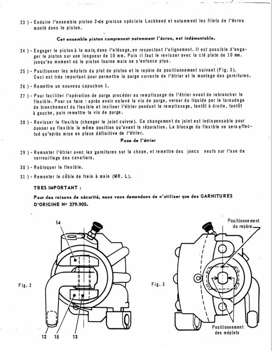 | Je rebondis sur ce post car je suis en train de refaire les étriers de ma 24. ça répond à une question que je me posais, à savoir la vis et contre écrou qui dépassent axialement du logement du piston servent uniquement à démonter le piston en tapotant dessus ?! ont ils une autre fonction ? merci energol pour ces documents. |